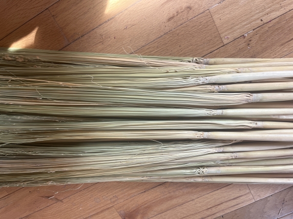 This is a bundle of raw, whole length broomcorn intended for making an Appalachian Sweeper Broom.